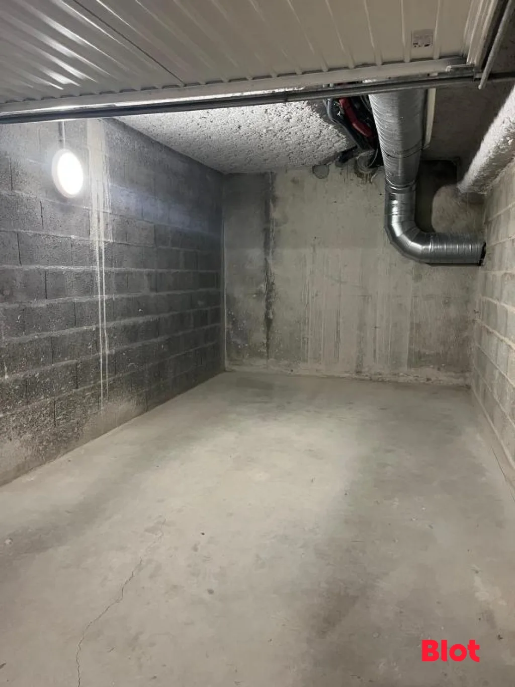 Le garage dispose d'un éclairage et d'une prise électrique. La porte est à ouverture manuelle.